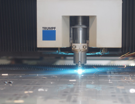 Im Bereich „Vorfertigung“ sind die Technologien Laserschneiden, Stanznibbeln und Biegen zusammengefasst. Es werden Bleche verschiedener Materialsorten und -stärken verarbeitet. Herzstück unserer Blechverarbeitungslinie sind moderne Laseranlagen und Stanzmaschinen mit Anbindung an ein automatisiertes Hochregallager. Hier sind kurze Durchlaufzeiten in gleichbleibend hoher Qualität unser Trumpf.